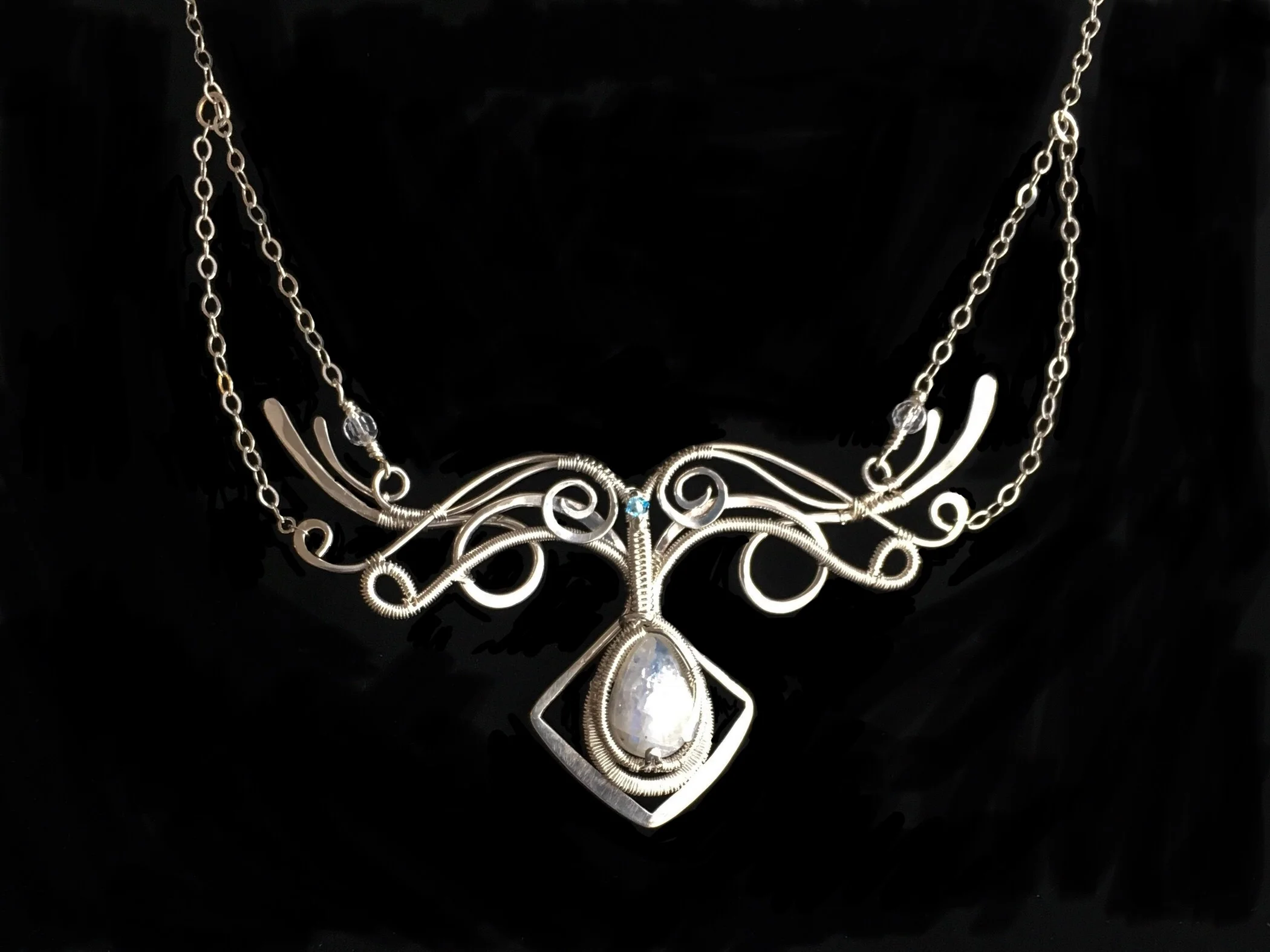 Moonstone drop hand-wrapped in pure silver onto sterling silver.
