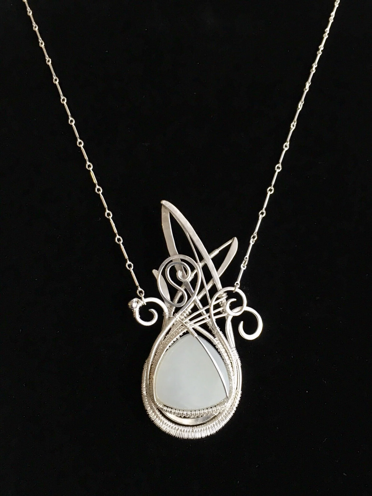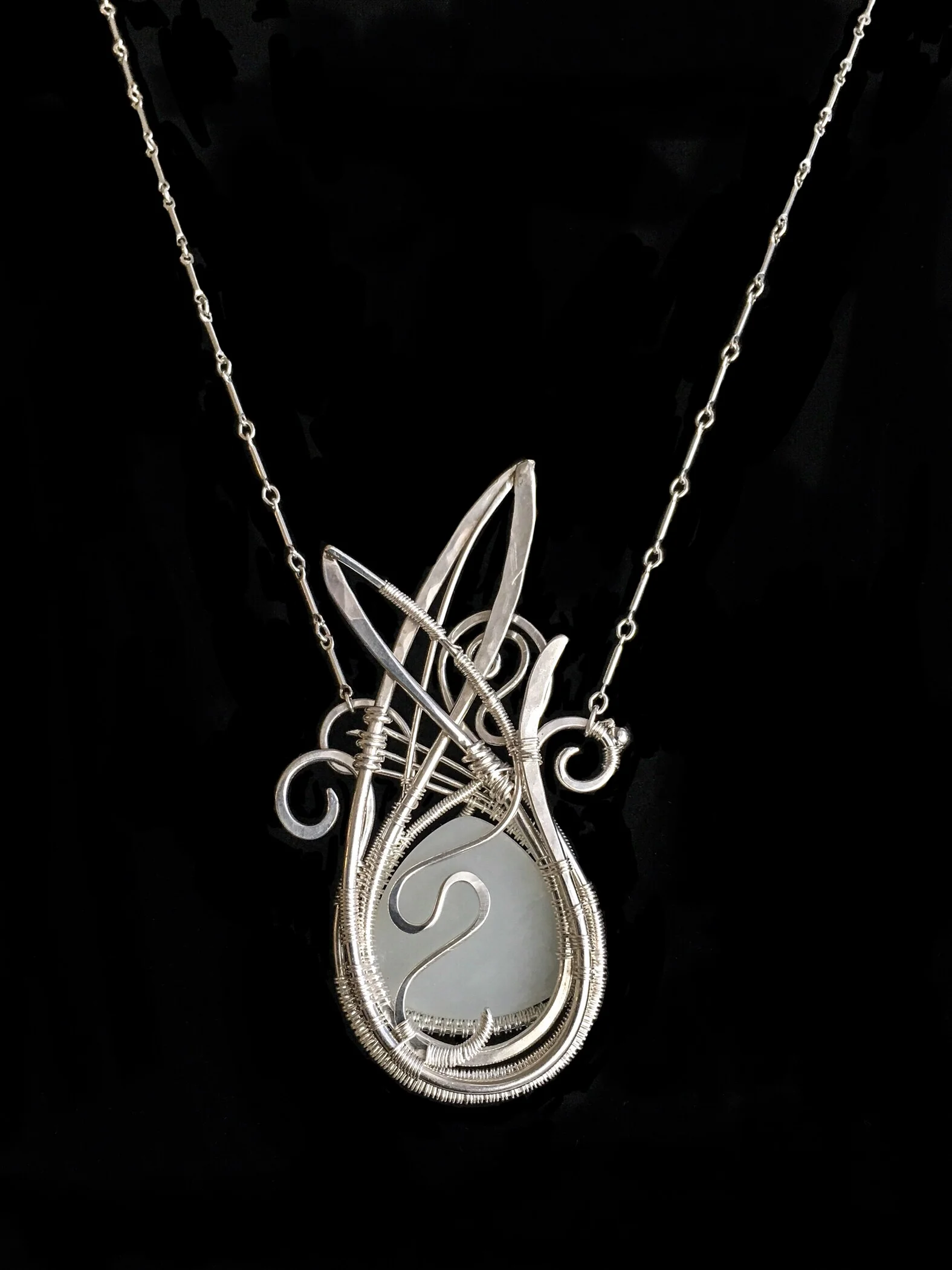 The pendant hangs on a bar and link sterling chain nearly 30” long.