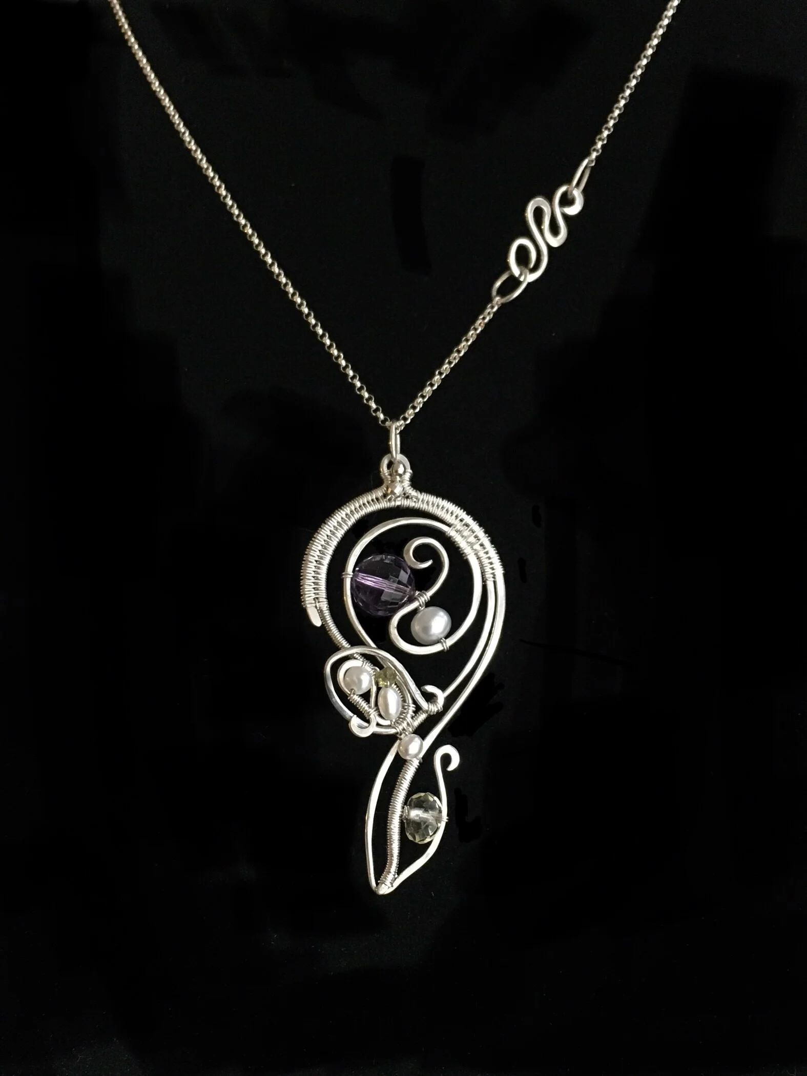 This piece is meticulously woven in pure silver onto flowing and graceful sterling wires.