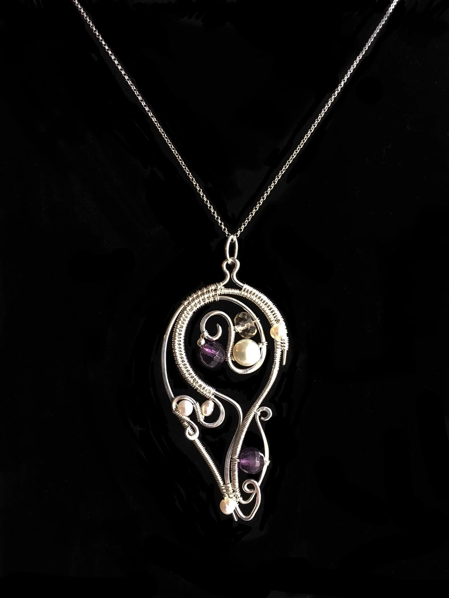 This petite piece possesses five freshwater pearls, two faceted amethysts and a faceted citrine.