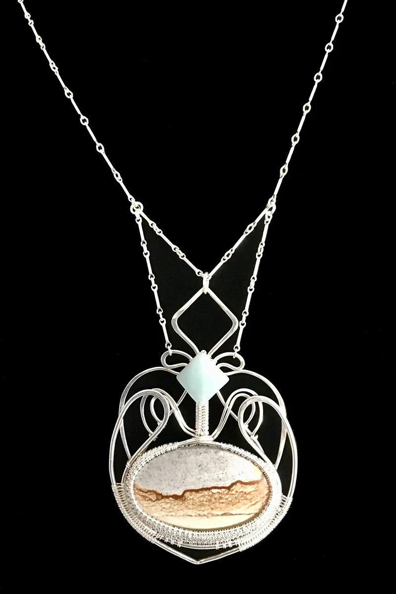 Picture jasper hand-wrapped in pure silver onto sterling.