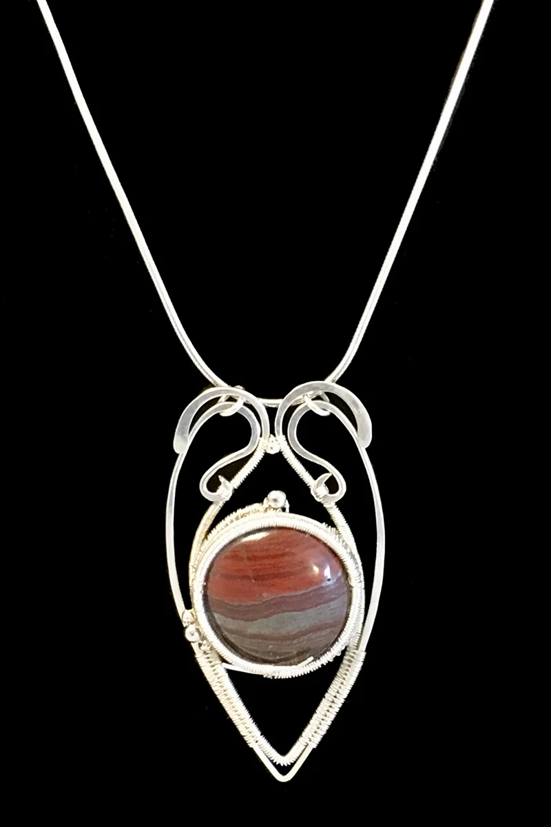 Tiger iron hand-wrapped in pure silver onto sterling.