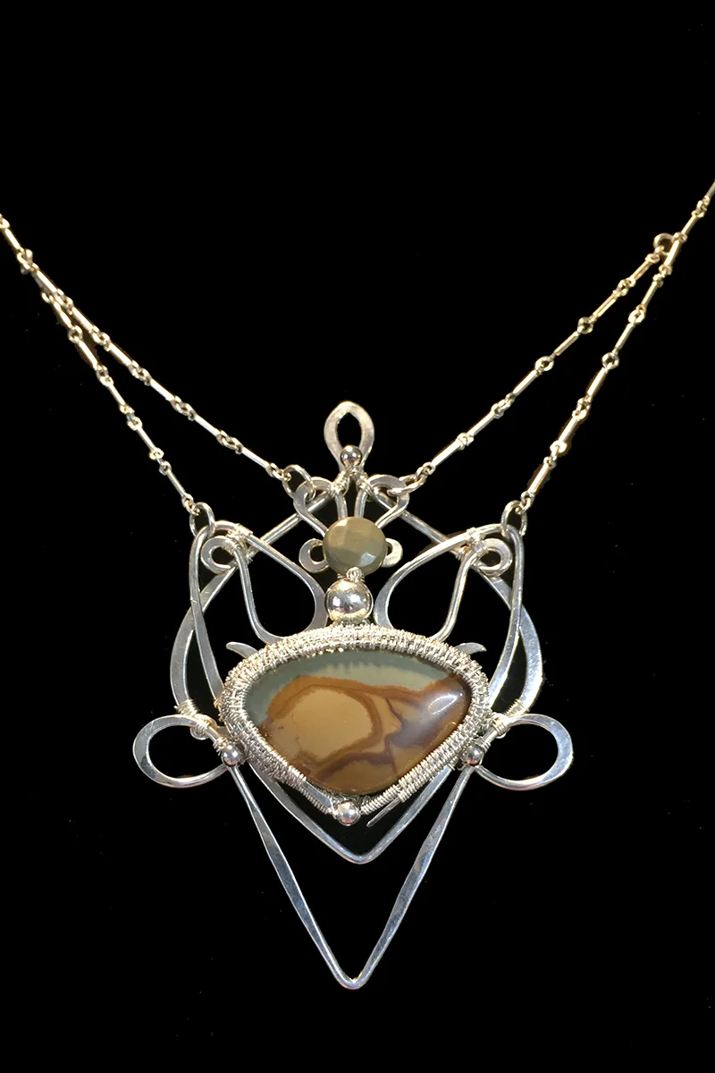 Owyhee jasper hand-wrapped in pure silver onto sterling.