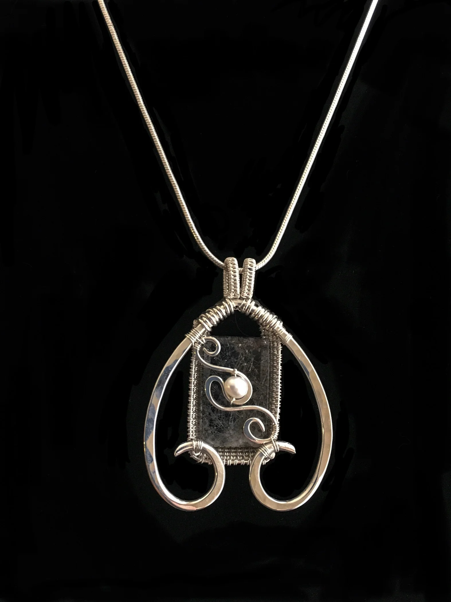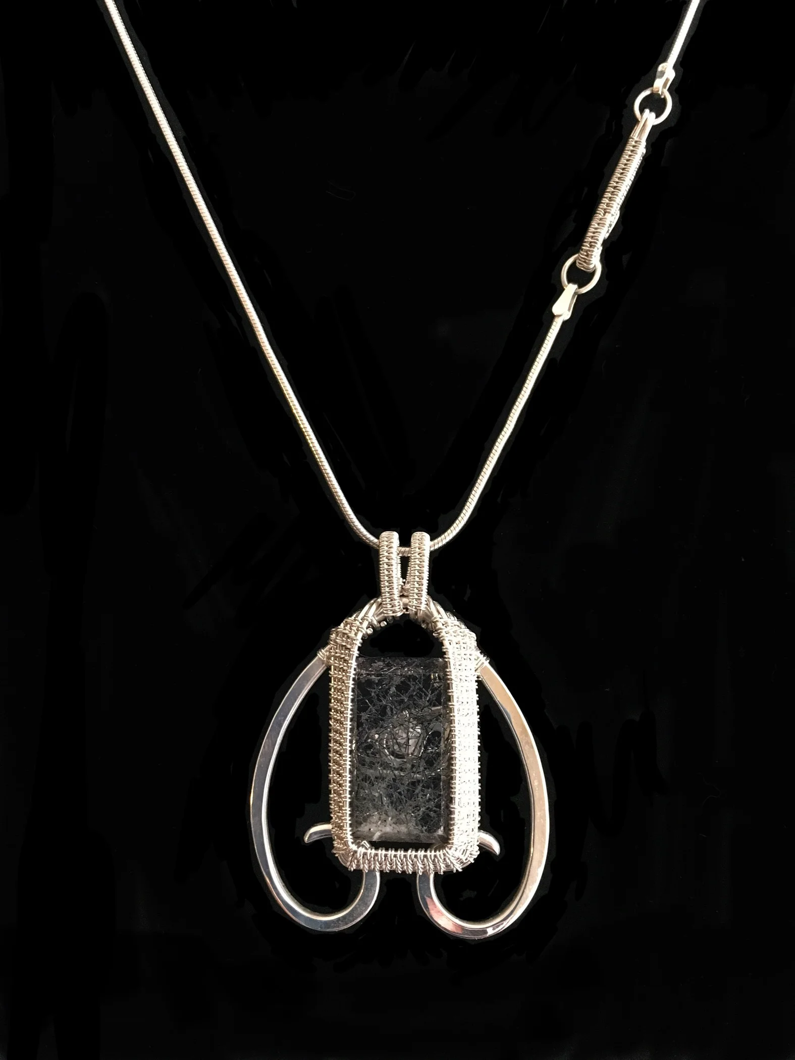 Handwoven in 28 gauge pure silver onto a sterling silver frame.
