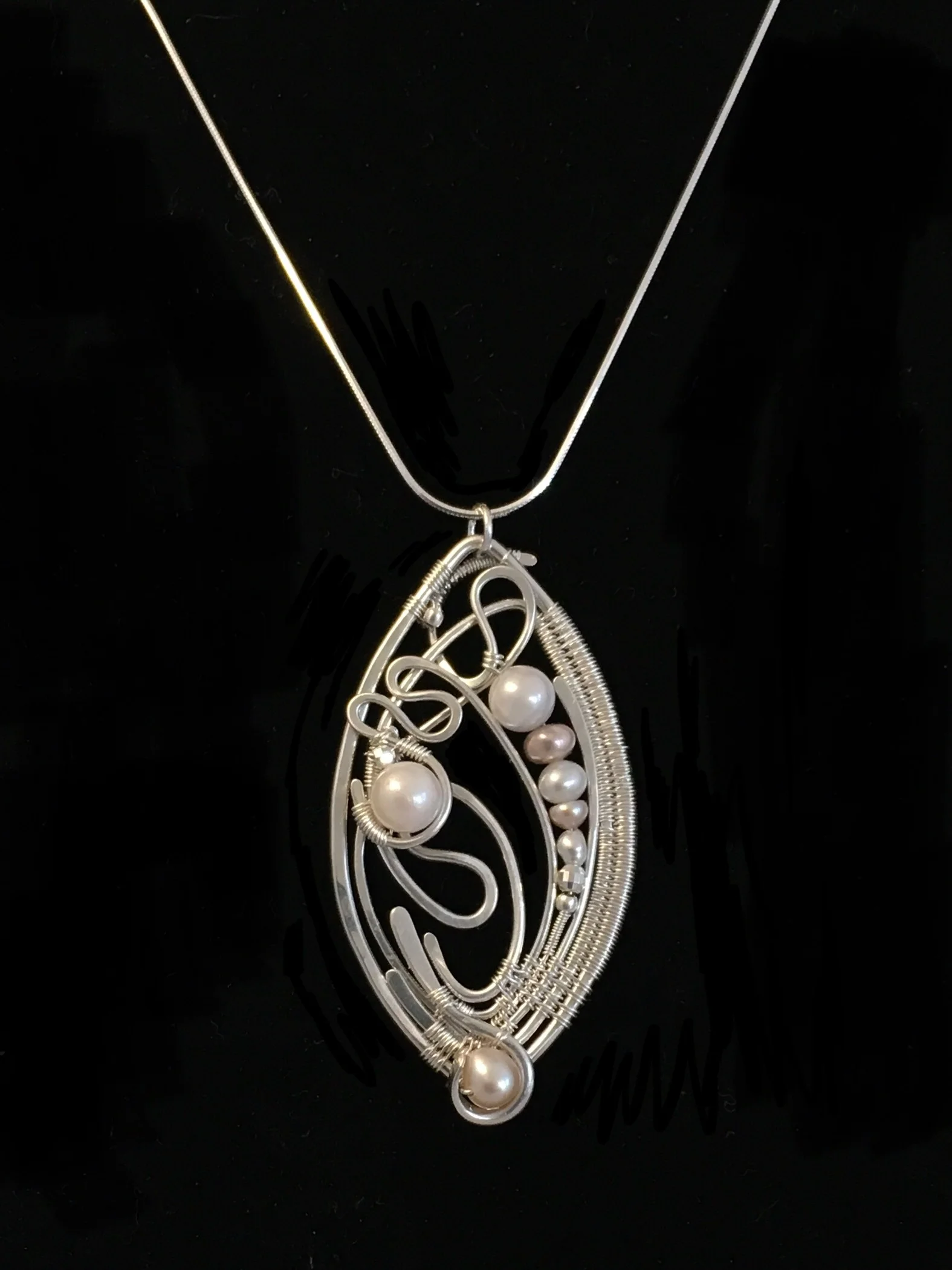 Cultured and freshwater pearls hand-wrapped in pure silver onto sterling.